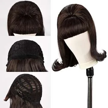 LONAI Retro Brown Wig 50s 60s 70s Wig with Bangs for Women Synthetic Hair for Halloween Costume Party