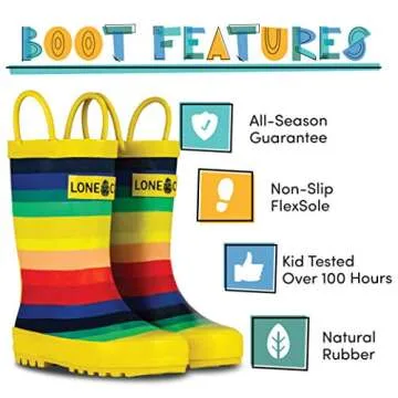 Lone Cone Rain Boots with Easy-On Handles in Fun Patterns for Toddlers and Kids, Chasing Rainbows, Little Kid 12
