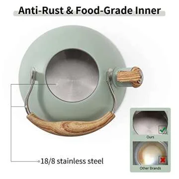 LONFFERY Tea Kettle for Stove Top, 2.5 Quart Whistling Tea Kettle, with Food Grade Stainless Steel and Wood Pattern Folding Handle, Turquoise