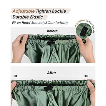 Say goodbye to cheap, flimsy bonnets that slip off during the night or leave painful impressions on your forehead. Our bonnet features a thick, comfortable elastic band that securely fits to your head without being too tight, coupled with an easy-to-use drawstring for added adjustability. You will appreciate the thoughtful design that accommodates larger hairstyles while keeping you snug and cozy all night long.