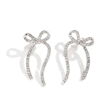 Long Chain Bow Dangle Drop Tassel Earrings for Women in Silver - Fashion Jewelry Gift