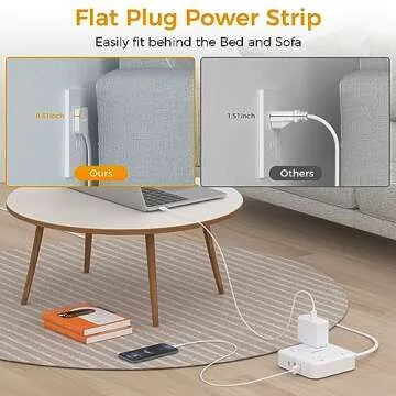 When comparing the TESSAN Long Flat Extension Cord to other brands, it clearly dominates in versatility and functionality. While many competitors offer basic extension cords, the inclusion of both USB A and USB C ports alongside multiple outlets makes this product stand out. Most other options lack the crucial safety features such as surge protection and circuit breakers, which TESSAN provides as standard. Furthermore, the wall-mountable design and flat plug ensure maximum usability, something many traditional power strips overlook.
