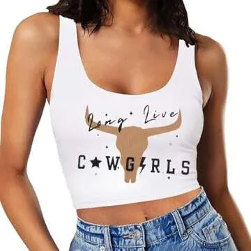 Long Live Cowgirl Tank Top Woman Country Music Crop Top Western Cowboy Shirt Cow Graphic Cami Sleeveless Tops White
