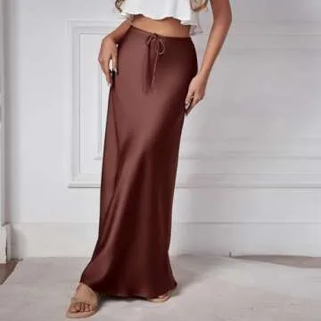 Show moreEmbrace effortless elegance with the Long Silk Skirt Women's Spring Summer Satin Silk High Waist Drawstring Ruffle A Line Long Maxi Skirt. This exquisite piece, made from premium satin silk, is designed to elevate your wardrobe with its sophisticated charm. Its high waist and adjustable drawstring allow for a customized fit, ensuring you feel both comfortable and stylish. The graceful A-line silhouette flatters all body types, making it a versatile addition to your attire for any occasion.