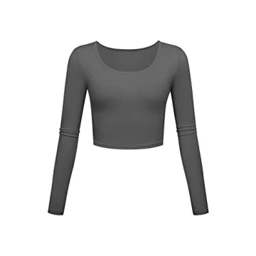 Long Sleeve Crop Tops for Women Workout Basic Clothes for Teen Ladies Fitted Slim Scoop Neck Cute Yoga Shirts (Grey, Small)