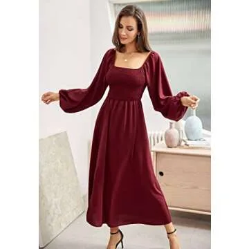 Long Sleeve Dress for Women Wedding Guest Off Shoulder Smocked Split Dress, Wine XXL
