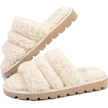 Show moreStep into comfort and style with the LongBay Women's Faux Sherpa Sandals. These sandals are designed with a FAUX FUR POLAR FLEECE insole that not only ensures warmth but also wicks moisture away, keeping your feet dry and comfortable. Whether you're barefoot or wearing socks, these sandals provide a cushy and fuzzy experience that feels like a hug for your feet.