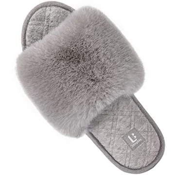 Luxury LongBay Women's Fuzzy Faux Fur Memory Foam Slippers - Gray