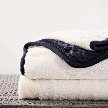 Show more Experience the ultimate comfort with our luxury throw blanket, designed to embrace you in warmth and style. With a unique double-sided feature, one side boasts a traditional 100% acrylic knit with a stylish cable knit effect, while the other side offers an indulgent soft sherpa fleece that feels divine against your skin. This exquisite blend not only keeps you toasty but also beckons you to cuddle up and unwind in the coziest way possible.
