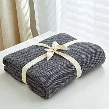 Show more Introducing the Longhui Bedding Dark Grey 100% Cotton Lightweight Cable Knit Throw Blanket, a perfect fusion of elegance and comfort. Measuring a generous 60 x 80 inches, this throw blanket is meticulously handcrafted to provide you with a medium-weight feel, making it ideal for every season, whether it’s a chilly winter night or a breezy summer evening. Wrapped in a rich dark grey hue, it beautifully complements any decor, ensuring a warm and inviting atmosphere in your living space. The intricate cable knit design adds a touch of sophistication, mimicking the charm of a handmade artisan product.