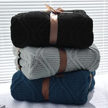 Longhui bedding Grey Chenille Cable Knit Sherpa Throw Blanket – Thick, Soft, Big, Cozy Gray Knitted Fleece Blankets for Couch, Sofa, Bed – Large 51 x 63 Inches Coverlet All Season