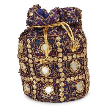 LONGING TO BUY Women's Mirror Potli Bag (Blue Multi)
