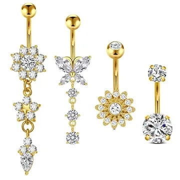 Show moreIntroducing the Longita Belly Button Ring Set—an exquisite collection of 4pcs Gold Belly Button Rings designed to elevate your piercing game! Crafted with precision from premium surgical stainless steel, these stunning dangle belly button rings boast both durability and a chic aesthetic. Each piece features a smooth, polished surface that promises comfort, making them an ideal choice for those with sensitive skin. Say goodbye to ordinary barbell styles and embrace the uniqueness of these gorgeous designs that truly reflect your individuality!