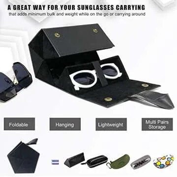 Longjet Sunglasses Organizer 5 Slots Travel Glasses Case Multiple Pairs Eyeglasses Storage Box Hanging Eyewear Holder (Full Black)