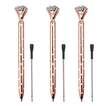 LONGKEY 3PCS Diamond Pens Big Crystal Diamond Ballpoint Pen Bling Metal Ballpoint Pen Offices and Schools 3 Rose Gold W/Dot