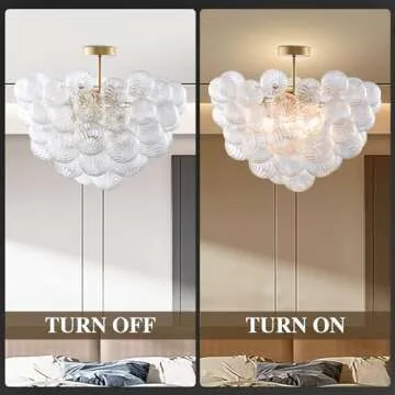 Longree Bubble Ball Semi Flush Mounting Ceiling Light Fixtures, Dia 20 inch Gold and Clear Blown Glass Small Swirled Glass Chandelier for Bedroom Study Bathroom Dining Room