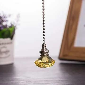 LONGSHENG Ceiling Fan Pull Chain Set - 2 pieces Yellow Diamond Fan Pull Chains 20 Inch Ceiling Fan Chain Extender with Chain Connector Home Wedding Decor Ornament Pendant