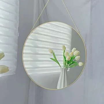 Show moreIntroducing the perfect blend of style and functionality, this exquisite hanging gold mirror from LONGWIN is a stunning addition to any home decor. Crafted with a high refractive index glass and framed with a sleek metal edge, this mirror not only serves its practical purpose but also elevates the aesthetic of your space. Measuring 400mm (15.7 inches) in diameter and weighing just 1034g (2.3 lbs), it is lightweight and easy to install, making it ideal for small spaces like foyers, bathrooms, or bedrooms.