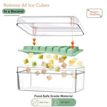 Show moreIntroducing the Longzon Mini Ice Cube Tray with Lid and Bin, your ultimate kitchen companion that transforms ice-making into a seamless and enjoyable task. Crafted from high-quality food-grade PP and PET materials, this innovative ice cube tray boasts an effortless release mechanism thanks to its unique golden diagonal design. No more struggling with stubborn ice cubes—just place the tray backwards onto the storage bin, apply a gentle push on both sides, and watch as all 60 mini ice cubes pop out in seconds! Its space-saving, stackable design allows you to produce 30 mini ice cubes at a time, making it an ideal solution for family gatherings, parties, or simply enjoying your favorite beverages at home.