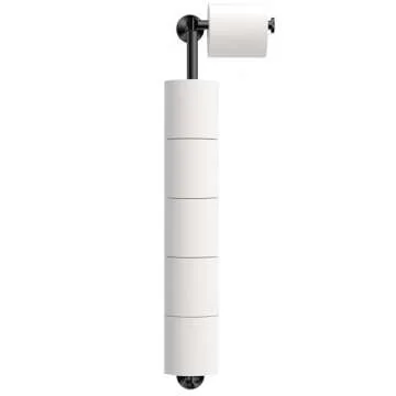 Longzon Toilet Paper Holder Wall Mount, Modern Silver Bathroom Toilet Paper Roll Holder for 6 Rolls Tissue with Storage, Premium SUS304 Stainless Steel Rustproof with Reserve for Bathroom Black