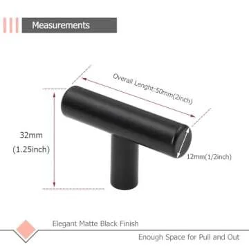 LONTAN 12 Pack Black Knobs for Cabinets and Drawers Kitchen Cabinet Knobs for Dresser Bathroom Modern T Bar Furniture Black Hardware,Stainless Steel