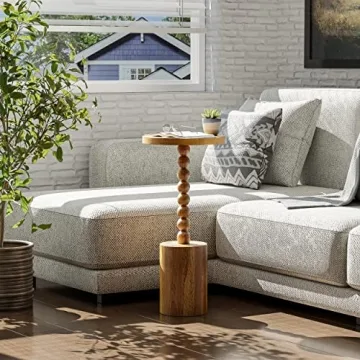 Show moreDiscover the elegance of the LONYKE Rustic Wood Drink Table, a beautifully designed round pedestal end table that is not only aesthetic but also functional. This table embraces a stylish yet minimalist approach, showcasing a stunning natural wood texture that brings warmth and visual appeal to your space. Supported by charming spindle legs atop a sturdy drum base, this piece effortlessly complements classic and farmhouse-style interiors. Its thoughtful design makes it a wonderful addition to any space, whether you wish to showcase seasonal decor or simply enhance your home’s rustic charm.