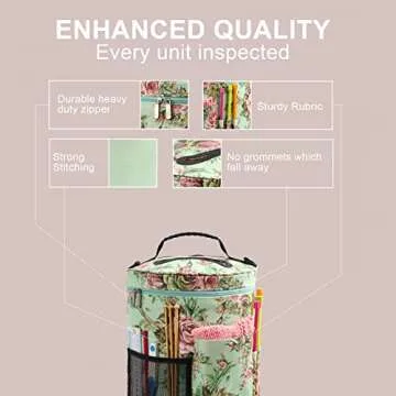 Lightweight and portable, the design boasts an easy-to-carry handle and a removable shoulder strap, offering the freedom to take your knitting projects wherever you go. The bag not only prioritizes functionality but also elevates your crafting experience with its stylish and cute aesthetic. You'll be sure to receive compliments on the charming round knitting organizer that brightens your crafting routine.