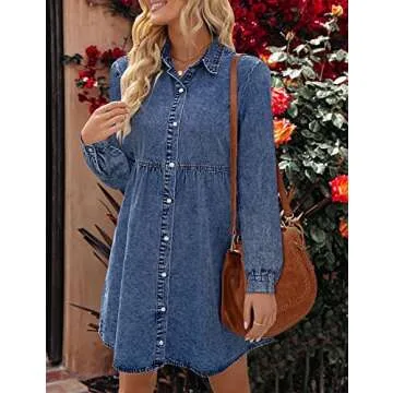 LookbookStore Denim Dress Babydoll Dress Fall Dresses for Women 2024 Winter Dresses Flowy Knee Length Dress for Women Cocktail Dresses for Women Wedding Guest Wishful Blue Size Small Size 4 6