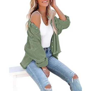 LookbookStore Fall Coats Women Shacket Shackets Fall Women Western Jackets for Women Oversized Jean Jacket for Women Womens Western Clothing Green Jacket Women Size M Size 8 Size 10
