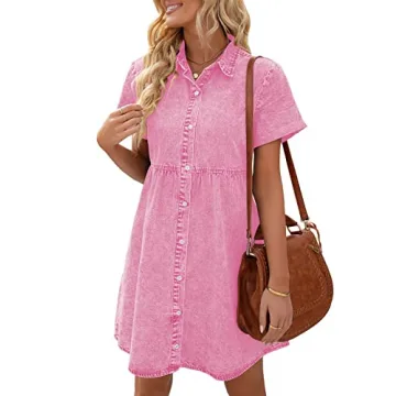 Introducing the elegant LookbookStore Denim Dress for Women Summer Casual Wear, a stunning piece that perfectly melds sophistication with casual comfort. Crafted from durable, breathable 100% cotton, this dress redefines contemporary style with its chic lapel collar and modern high-low hemline. Available in vibrant shades such as the bold poppy red and refreshing reef blue, it not only offers a flattering look but also prioritizes your comfort. The short sleeves and tailored high waist seamlessly...