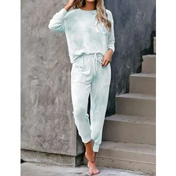 Show moreExperience the ultimate in comfort and style with the LookbookStore Two Pieces Outfits Home Loungewear for Women. This cozy tie dye lounge set is designed to elevate your relaxation time while ensuring you look chic at home or out and about. Crafted from soft and breathable fabric, this pajama set features a relaxed fit that allows for easy movement and maximum comfort. The dreamy light blue tie dye print adds a trendy touch, making these joggers as fashionable as they are comfortable. Enjoy the convenience of thoughtful details like an elastic drawstring waist and side pockets, perfect for keeping essential items close while maintaining a sleek silhouette.