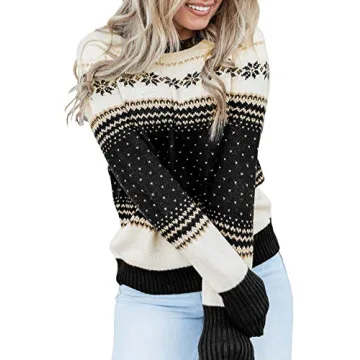 Cozy Women's Festive Holiday Knit Sweater - Warm Winter Pullover with Reindeer & Snowflakes