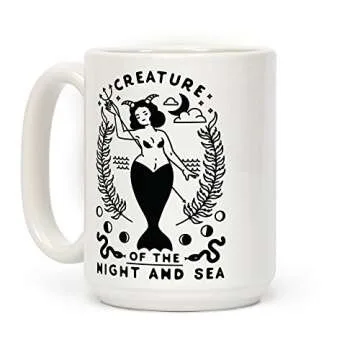 LookHUMAN Creature of the Night and Sea White 15 Ounce Ceramic Coffee Mug