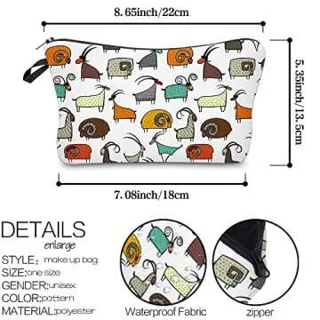 LOOMILOO Small Toiletry Bags for Women, Adorable Roomy Makeup Pouch Travel Water Resistant Cosmetic Purse Accessories Organizer Gift(Goat 55427)