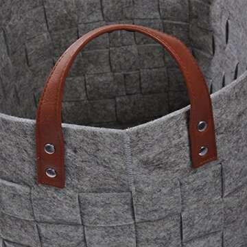Show moreIntroducing the perfect solution for your storage woes: our stylish and practical felt storage baskets! Crafted from high-quality industrial felt with a sturdy PU handle, these baskets are designed to offer an elegant yet durable storage option for any room in your home. With dimensions of 14.96 inches (L) x 11.02 inches (W) x 12.6 inches (H), they provide ample space to organize and store a variety of items—from toys in the family room to linens in the guest bedroom.