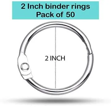 Loose Leaf Binder Rings 2 Inch, Metal Book Rings for Index Cards 50 Pack, Heavy Duty Nickel Plated Great for Flashcards, Home, School and Office