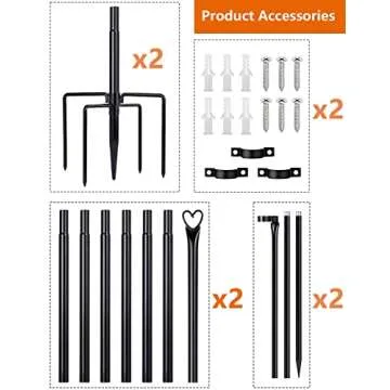 Crafted from premium-quality, rust-resistant steel, these light poles are built to withstand the elements while maintaining an elegant appearance. Their sturdy construction features a lengthened four-legged base and fixed bracket design for enhanced stability, ensuring they stand tall and straight even on windy days. The upgraded reinforced diagonal support and 5-prong push fork allow you to drive them deep into the ground, providing a secure installation that is simple to achieve without the need for tools!