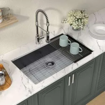 Lordear 32 Inch Kitchen Sink Undermount Gunmetal Black 16 Gauge Stainless Steel Single Under Counter Rectangular Handmade Sinks Basin, 32" x 19" x 10"