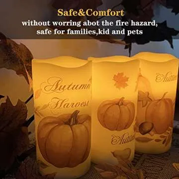 Lordearon Fall Pumpkin Flameless Candles Real Wax LED Battery Operated Pillar Candles with Timer, Thanksgiving Decor Set of 3,Warm Light