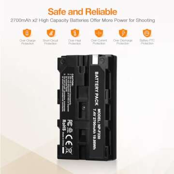 LORDONE NP-F550 Battery, 2-Pack 2700mAh NP F550 Battery and Dual USB Charger Set for Sony NP F970, F750, F770, F960, F550, F530, F330, F570, CCD-SC55, TR516, TR716, TR818, TR910, TR917 and More