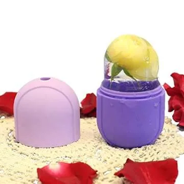 LORDWEY Face Roller, Silicone Gua Sha Skin Care Kit, Ice Roller for Face, Facial Roller Massager to Eliminate Puffiness, Ice Globes for Face Beauty (Purple)