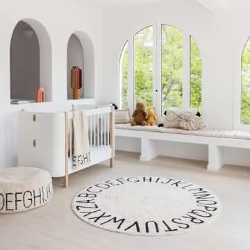 Show more Introducing the Original ABC Alphabet Rug from Lorena Canals, an exquisite addition to any nursery, playroom, or classroom that brings together style and functionality in one perfectly crafted piece. Designed with a vibrant alphabet around the edge, this round rug not only enhances room decor but also makes learning the ABCs a delightful experience for children. Whether you're setting up a cozy nursery or revamping a playroom, this rug stands as an enchanting centerpiece, seamlessly blending with modern interiors.