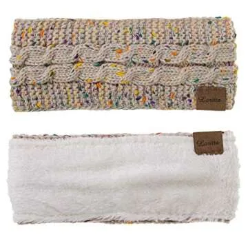 Loritta Womens Ear Warmers Headbands Winter Warm Fuzzy Cable Knit Head Wrap Fleece Lined Gifts,Beige
