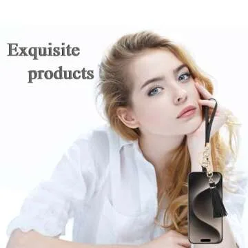 Lostars 2 Sets Leather Phone Wrist Strap, Detachable Cellphone Lanyard with Tether Tab, Elastic Hands-Free Wristlet Bracelet for Women (Black-1)