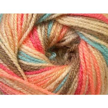 Show more Introducing the Lot of 4 x 100gr Skeins Ice Yarns Gumball Yarn in stunning colors of Khaki, Salmon, Blue, Camel, and Cream! This exquisite yarn is crafted from 100% Premium Acrylic, providing a soft, durable, and versatile material for all your knitting and crochet projects. Each skein weighs a generous 100 grams, giving you plenty of yarn to create beautiful garments or accessories, or even to add vibrant pops of color to home décor. Its self-striping feature ensures a beautifully blended look without the hassle of changing yarns, making it perfect for knitters of all skill levels.