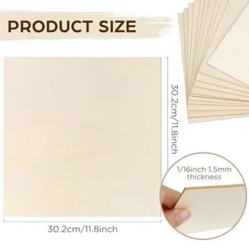 LotFancy Basswood Sheets, 12 Pack, 12 x 12 x 1/16 Inch, Plywood Sheets with Smooth Surfaces, 1.5mm Craft Wood Board for Laser Cutting, DIY Architectural Models, Wood Burning and Staining