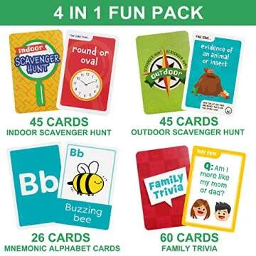 LotFancy Card Games for Family Game Night, 4 in 1 Pack, Scavenger Hunt Games for Kids, Indoor Outdoor Activities, Family Trivia, Educational Game, Jumbo Size, Gifts for Ages 2-6
