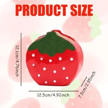 Show more This adorable ceramic Strawberry Makeup Brush Holder is the perfect blend of functionality and charm. Crafted from high-quality ceramic material, this charming holder showcases a brilliant strawberry design that not only provides elegant storage but also serves as a delightful decoration for any workspace. The smooth surface and hand-painted finish elevate its aesthetics while ensuring durability and long-lasting use. Measuring at 125 mm x 75 mm x 121 mm, it fits perfectly on your vanity, desk, or any narrow shelf. With its polished bottom, this holder stands flat and sturdy, avoiding any chance of tipping over.