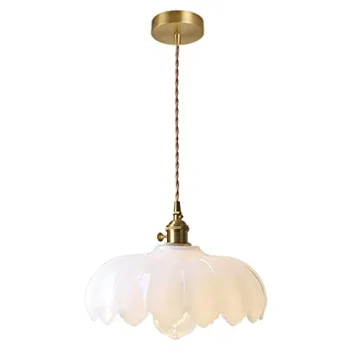 Show moreIlluminate your home with the exquisite LOTREE Milk White Glass Pendant Light Fixture, a stunning blend of modern elegance and vintage charm. With a unique milky white finish, this medium-sized pendant lamp boasts a diameter of 9.8 inches and a height of 7 inches, making it an ideal enhancement for any kitchen, dining area, or living room. Expertly crafted from high-quality handmade glass, this beautiful fixture offers a welcoming warmth that enhances your existing decor. The hard-wired design ensures a sleek look, eliminating the clutter of bulky cords, while the adjustable 59-inch cable allows for customization for any ceiling height.