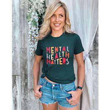 LOTUCY Funny Mental Health Matters T-Shirt for Women - Green